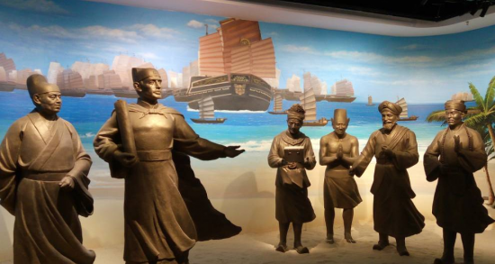 第四展厅介绍郑和代表明王朝和各国人民建立亲善往来:第四展厅记述了各国人民对郑和的崇敬和怀念。